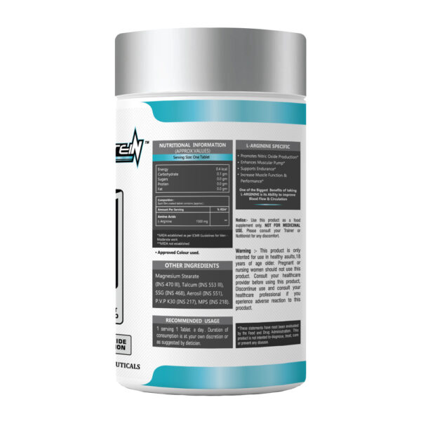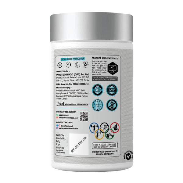 Enhance blood flow, focus, and endurance with Protein Hood L-Arginine tablets. Formulated to boost nitric oxide production for better muscle pump, strength, and performance. 90 tablets per pack for athletes and fitness enthusiasts.