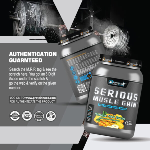 Be the first to review “Serious Muscle Gainer 1.5 kg – 24g Protein, 3g Creatine & 10g Fiber | Protein Hood”